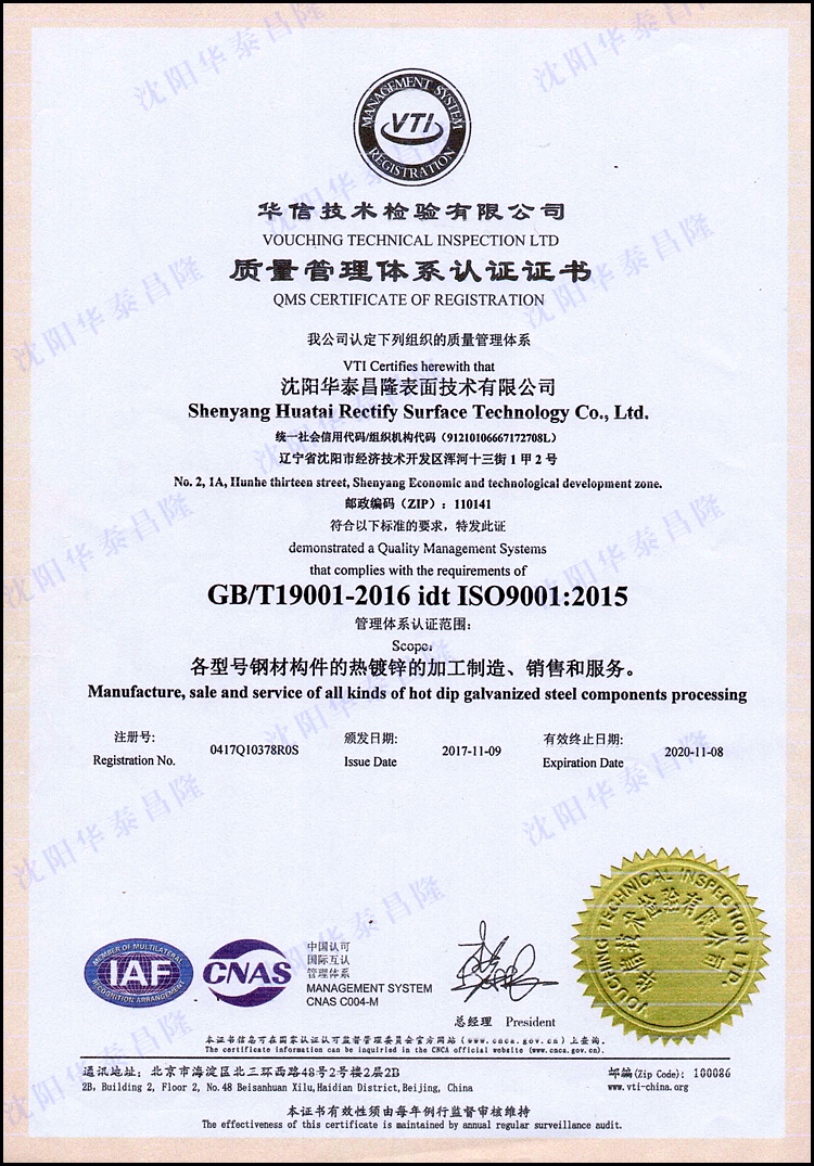 2017年取得ISO9001:2015質(zhì)量管理體系認(rèn)證證書